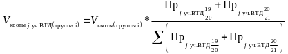 Vквоты j уч. ВТД(группа i) - объем нетарифной квоты, рассчитанный j-му участнику внешнеторговой деятельности в отношении удобрений по группе i;
