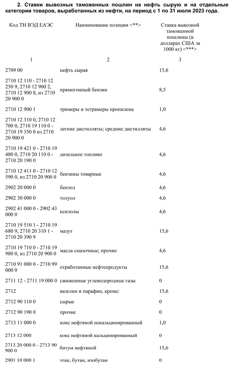 2. Установить, что положения методики расчета ставок вывозных таможенных пошлин на отдельные категории товаров, выработанных из нефти, утвержденной постановлением Правительства Российской Федерации от 29 марта 2013 г. №276 "О расчете ставок вывозных таможенных пошлин на нефть сырую и отдельные категории товаров, выработанных из нефти, и признании утратившими силу некоторых решений Правительства Российской Федерации" (в редакции настоящего постановления), применяются при расчете ставок вывозных таможенных пошлин на отдельные категории товаров, выработанных из нефти, уплачиваемых начиная с 1 июля 2023 г.